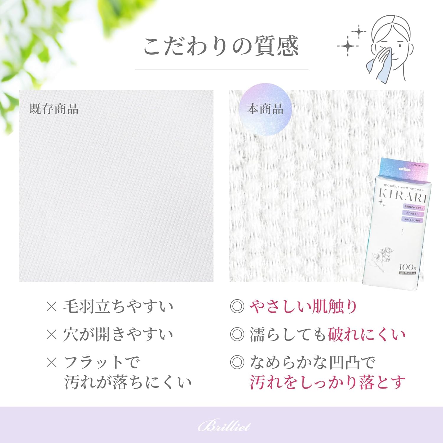 Brilliet KIRARI 使い捨てフェイシャルタオルが解決します。